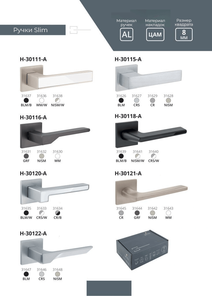 The handles are available in 7 types and various colors, which you can see in the photo below.