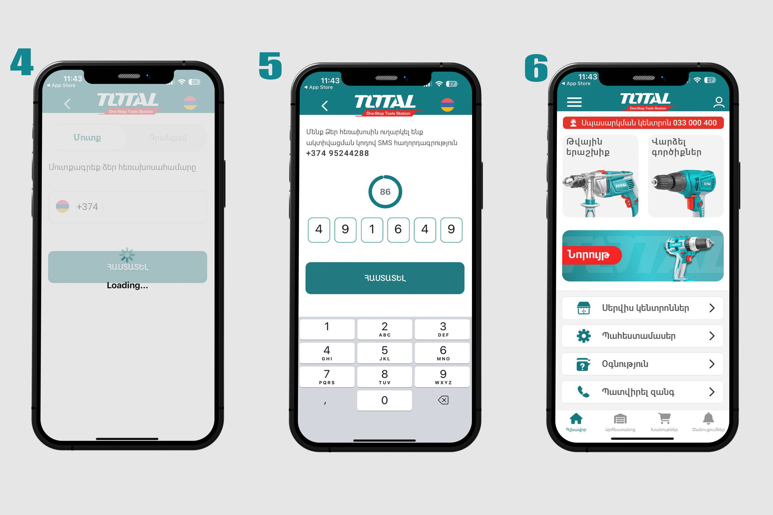 Ներբեռնե՛ք totalservice APP-ը iOS & Android համակարգերից և գրանցեք Ձեր էլեկտրական գործիքը մեկ հպումով։